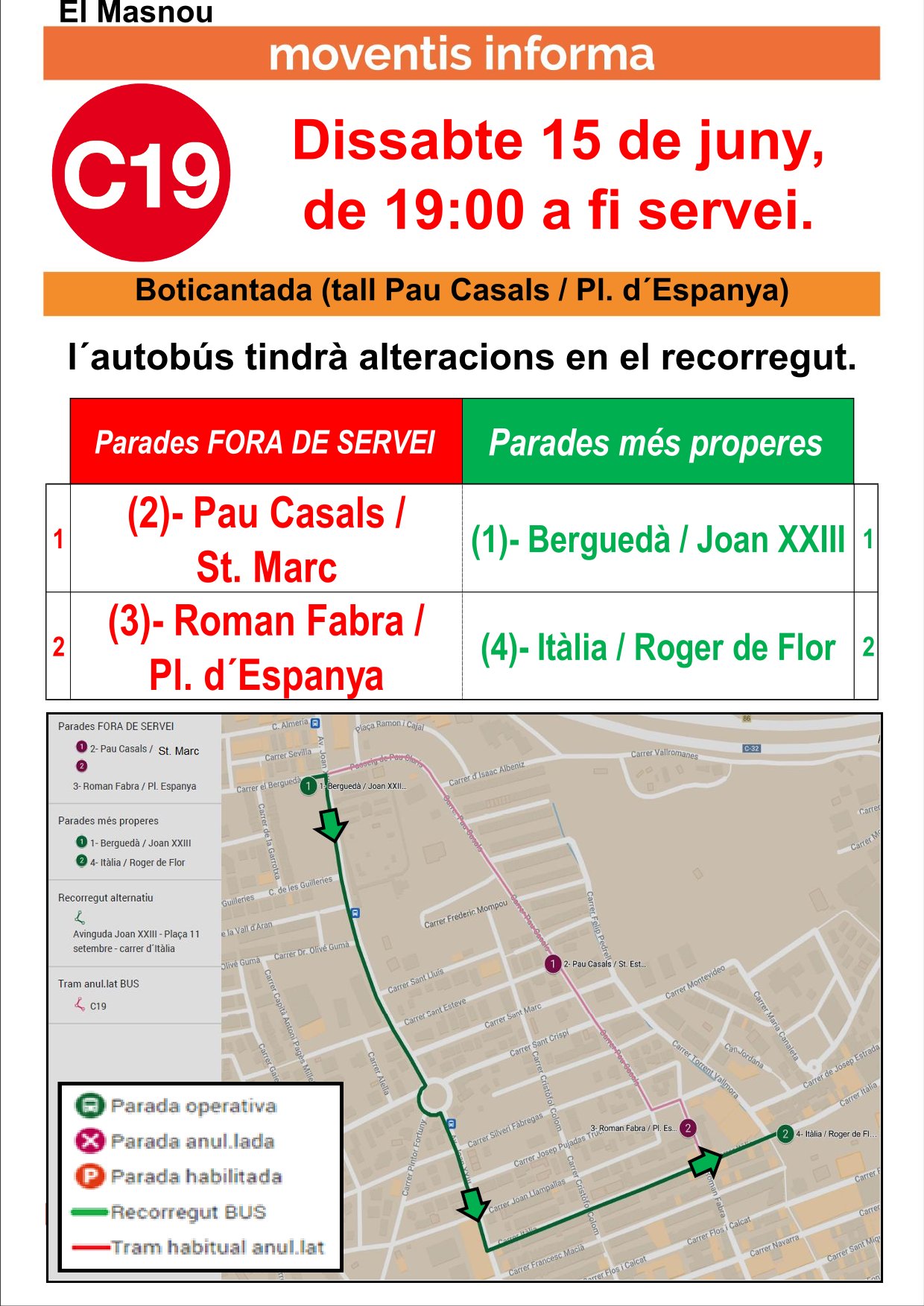 El bus urbà (línia C19) desviarà el seu recorregut a causa d'aquest tall.