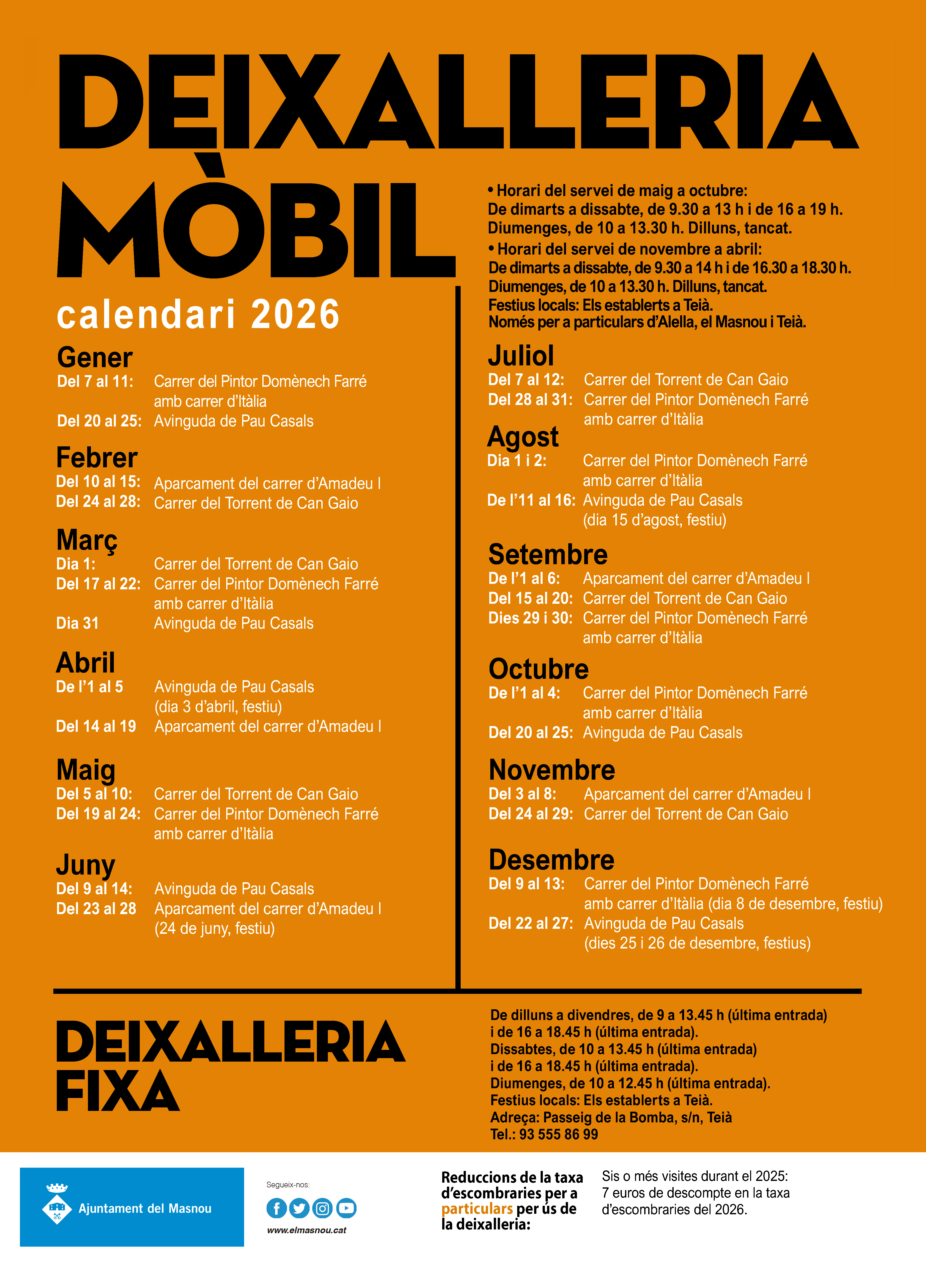 La deixalleria està tancada els dies que són festius locals de Teià.